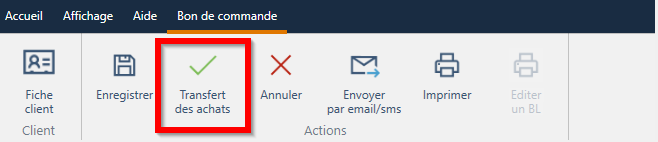 Seuls les articles qui sont affectés sur le bon de commande seront alors transformés en vente.