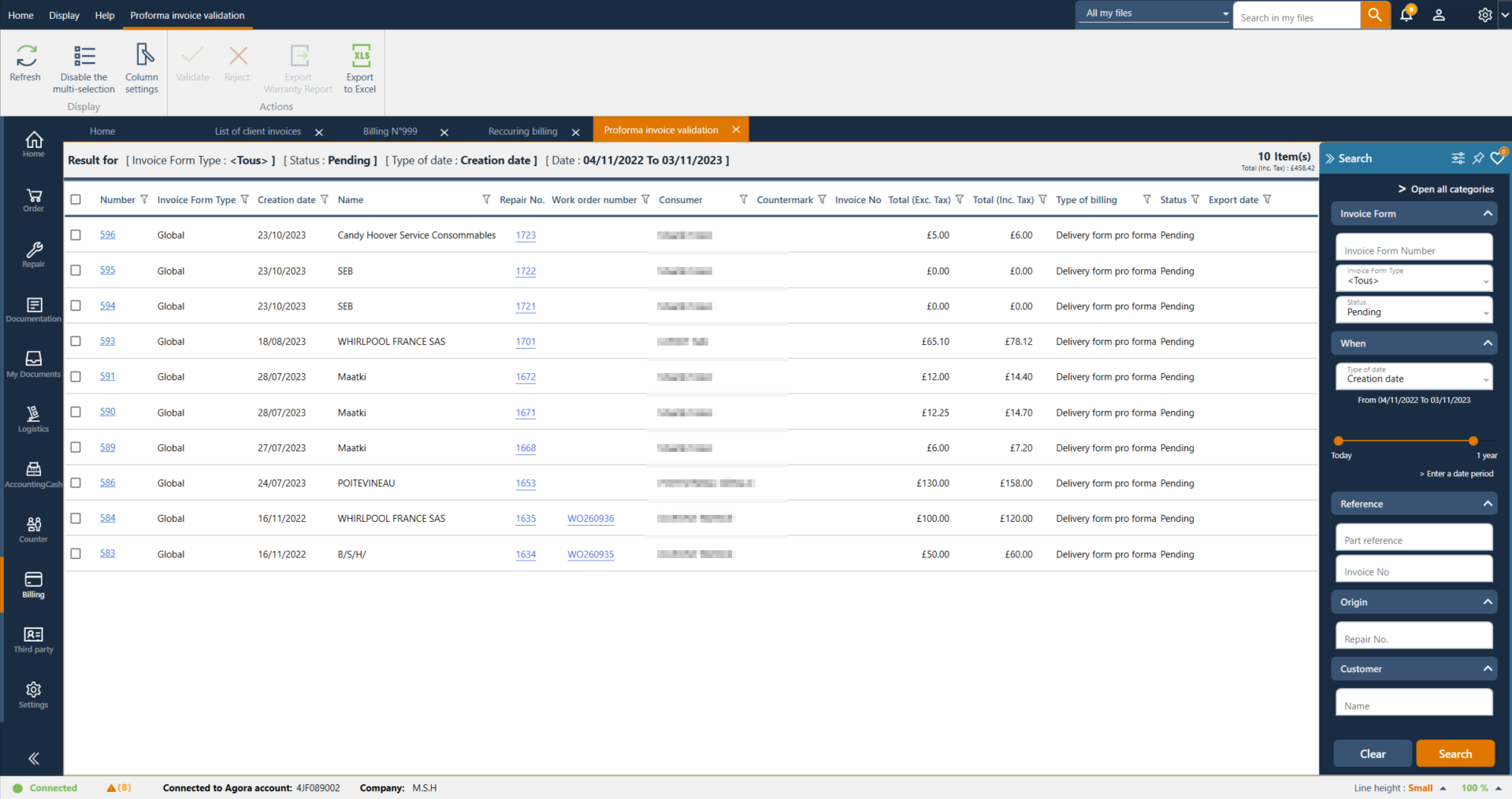 It is also possible to modify certain information (items, invoice date, amounts) on these invoices.