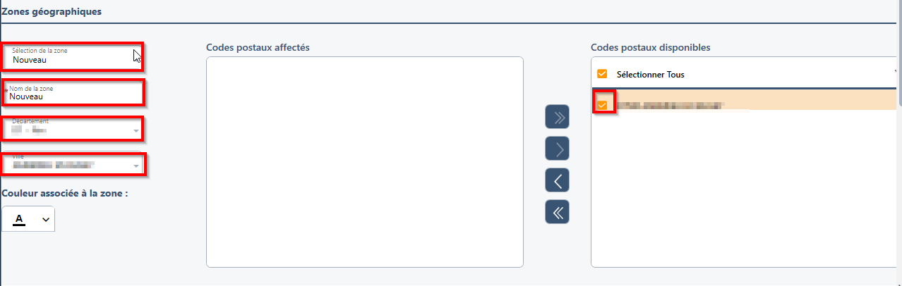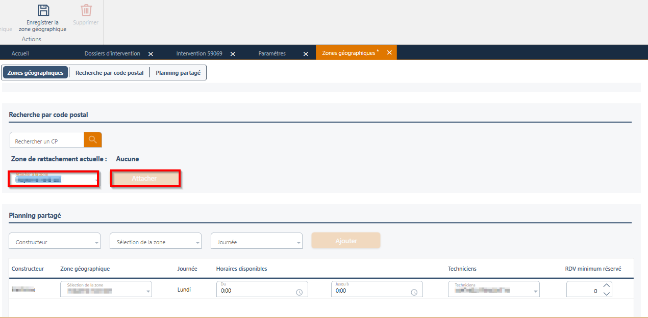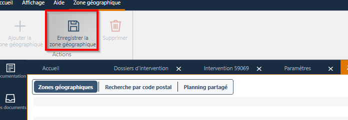 - Dans « Interventions », cliquer sur « Zone géographique »