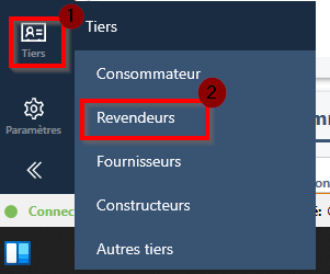 - Cliquez sur Tiers, puis sur Revendeurs, puis sélectionnez le dossier.