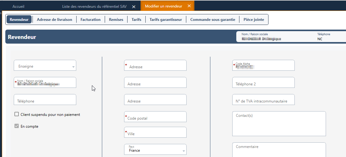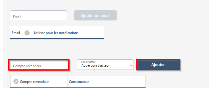 - Sur la fiche revendeur, renseigner les champs suivant :