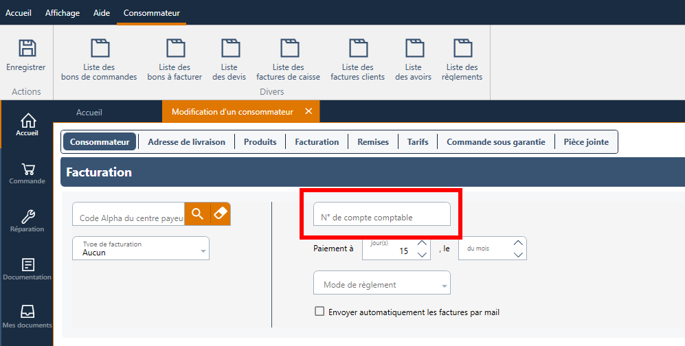 Dans le cas où certains clients seraient associés à des comptes clients spécifiques, vous pouvez les ajouter dans la fiche client :