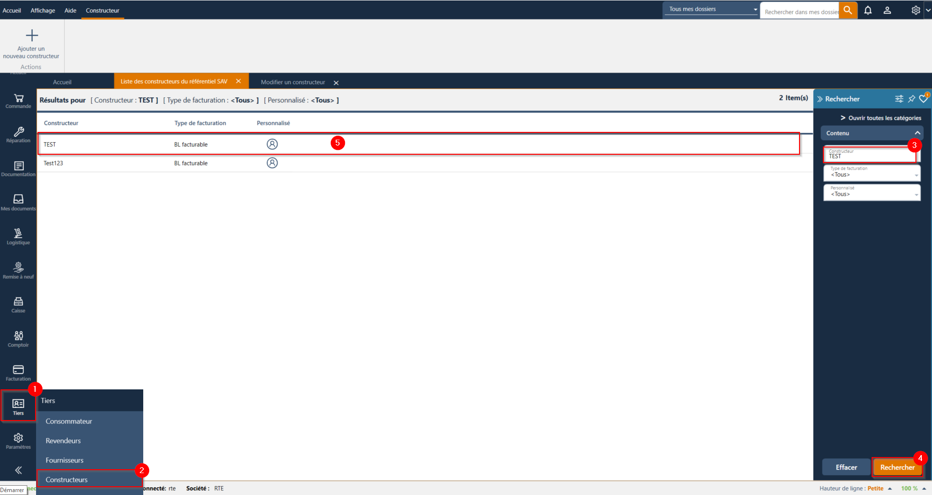 1. Sélectionnez le module "Tiers", puis choisissez le sous-module correspondant à la catégorie de tiers dont vous avez besoin (par exemple, "Consommateurs", "Fournisseurs", etc.).