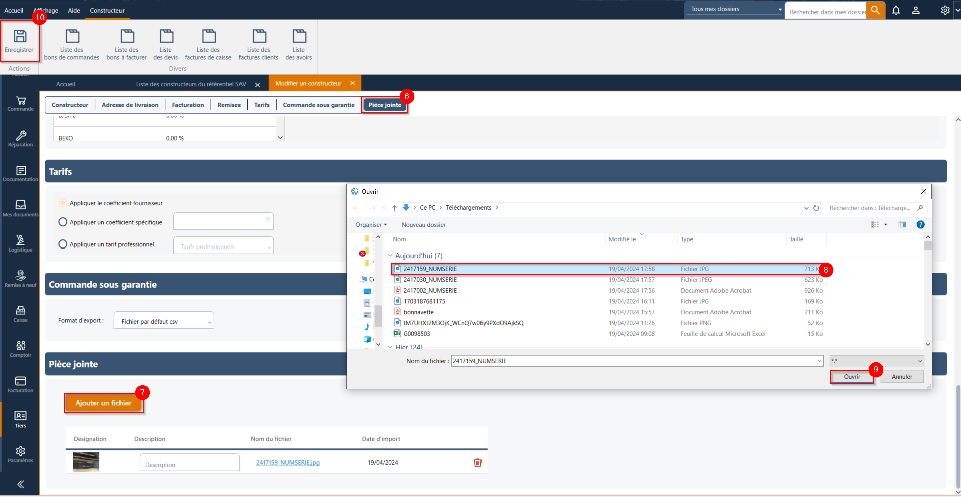6. Après avoir sélectionné le fichier, cliquez sur le bouton "Enregistrer" pour sauvegarder les modifications et attacher le fichier à la fiche du tiers.