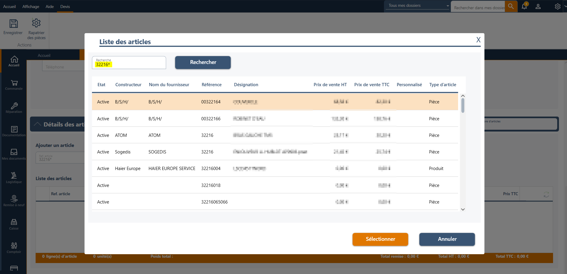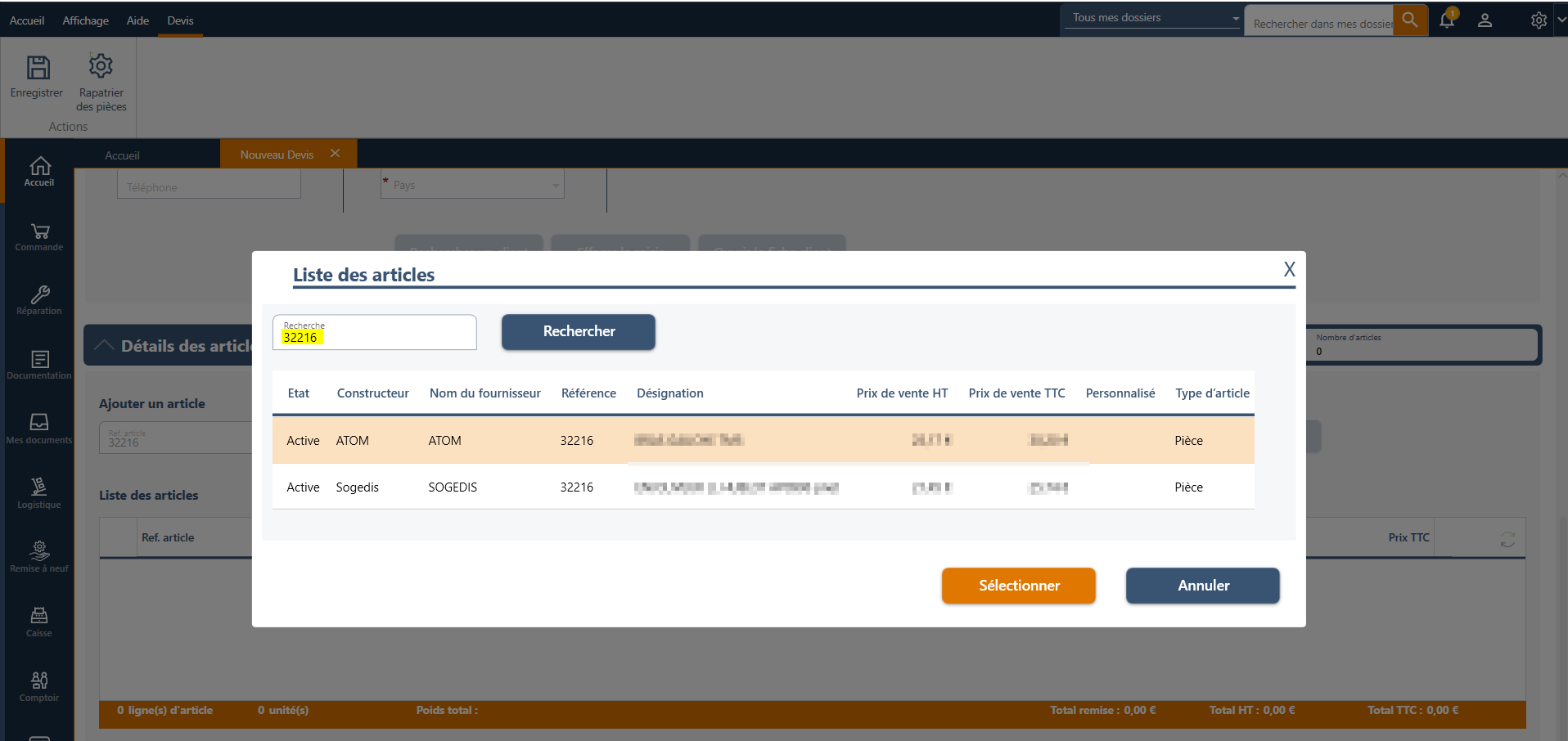 Recherche précise : En saisissant une référence exacte, comme 32216, la recherche sera instantanée.