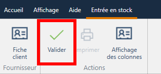 Cliquer sur « Valider » afin de confirmer l’entrée en stock de ces pièces :