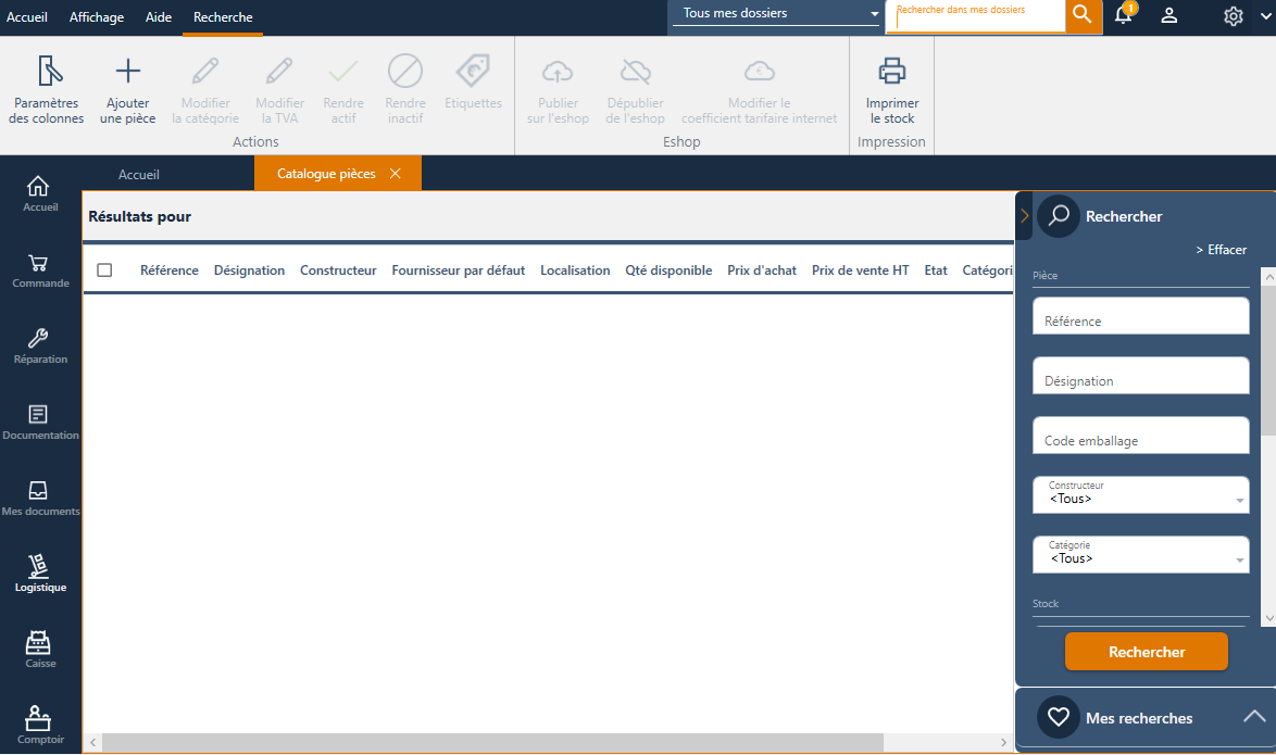 Dans ce catalogue, il est possible de chercher ses pièces et de les gérer :
