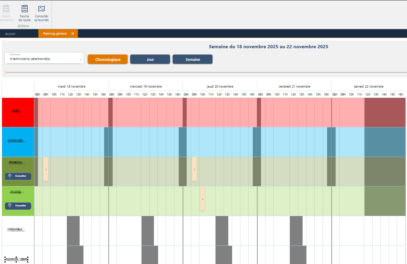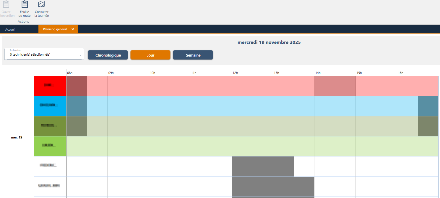 Afin d'avoir un affichage du planning exclusivement centré sur les techniciens en épurant l'affichage, il est possible de paramétrer le masquage de la ligne "Autre"