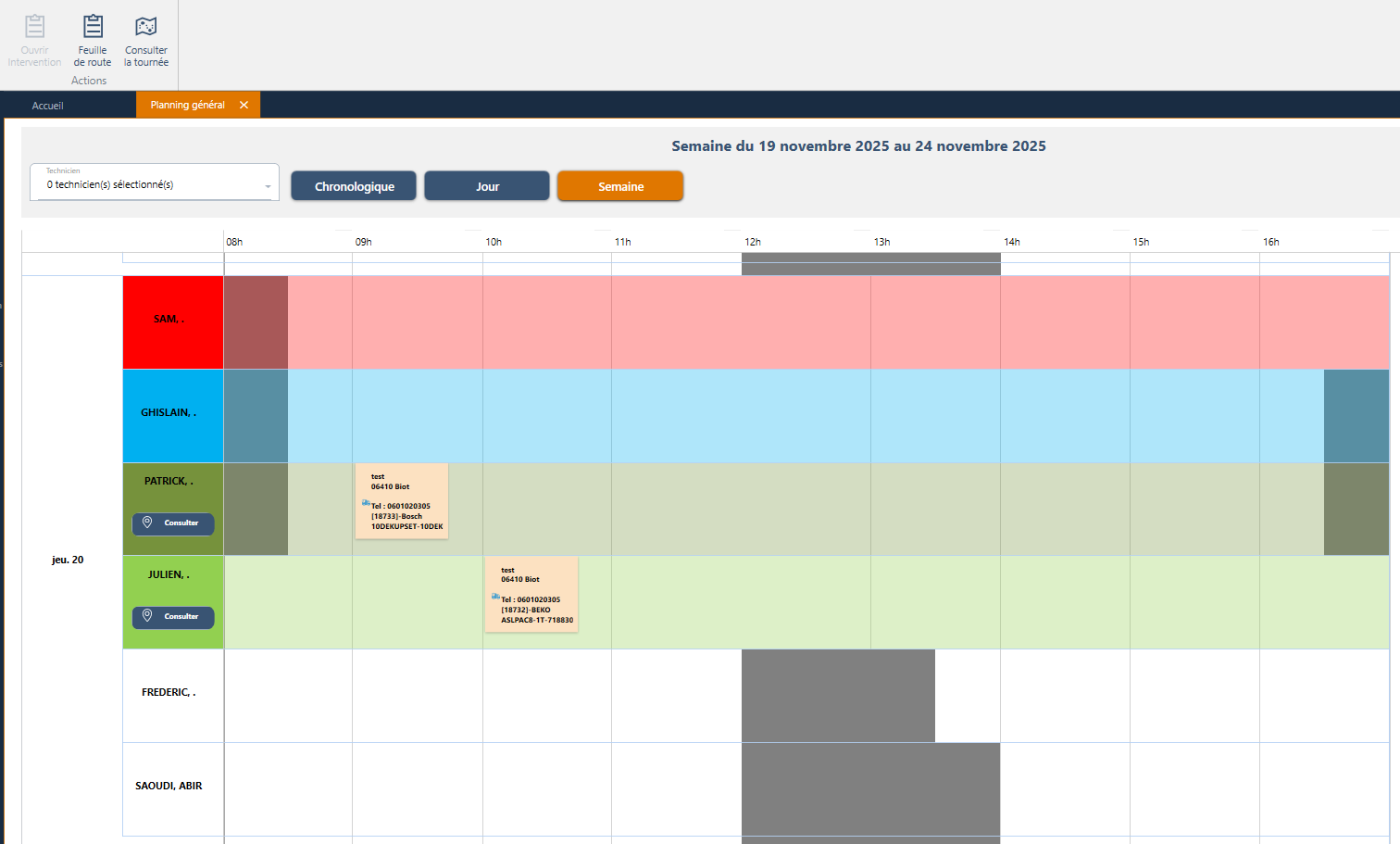 5/ Lorsque le paramétrage d'affichage est désactivé, la ligne "Autre" n'est plus visible dans la planning général, ni dans le planning qui est ouvert depuis un dossier d'intervention.