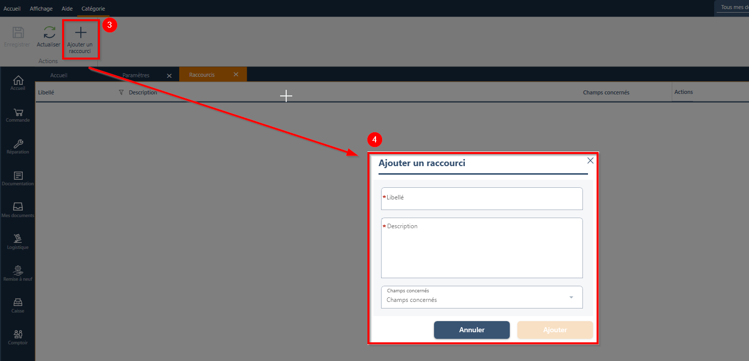 NB : une fois créés, ces raccourcis peuvent être modifiés et/ou supprimés