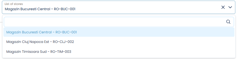 Când se selectează "Pick up from store", apare un nou câmp cu o listă derulantă ce permite alegerea altui magazin.