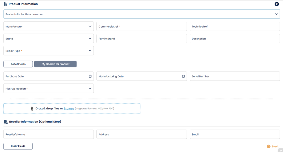 Acest pas permite căutarea unui produs deja asociat consumatorului sau crearea unuia nou pe baza informațiilor disponibile.