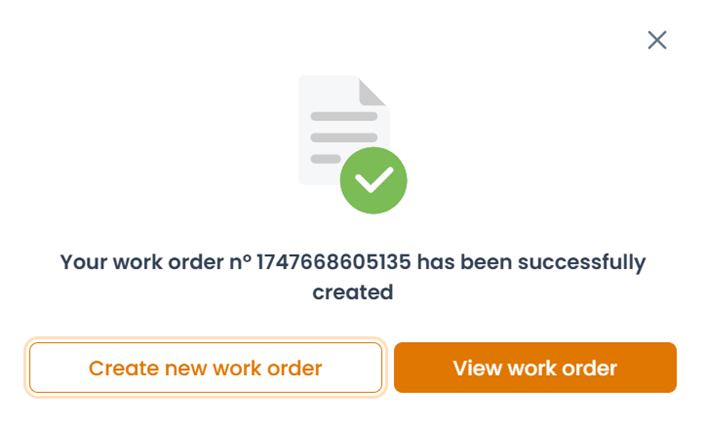 După confirmare, o notificare afișează numărul WO generat. Utilizatorul are apoi două opțiuni: